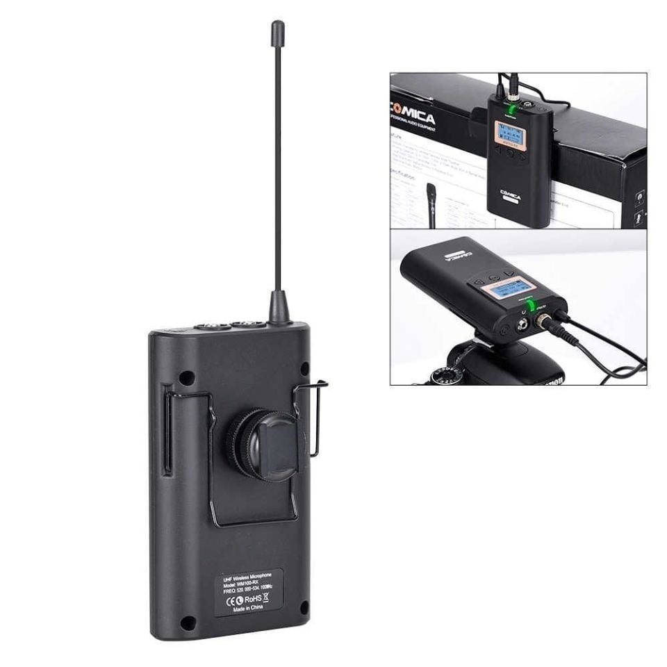 Comica CVM-WM100H UHF kablosuz mikrofon sistemi, kameralar ve fotoğraf makineleri için profesyonel bir ses kaydedicidir. Bu 48 bağımsız kanal, 100 m çalışma mesafesi, gerçek zamanlı dinleme, lcd ekran, ayarlanabilir RF gücü, düşük kesim filtresi, 16 kademe ses seviyesi ayarlanabilir hacim, sessiz modu, size en iyi kayıt deneyimini getirirken kristal netliğinde ses kaydetme.