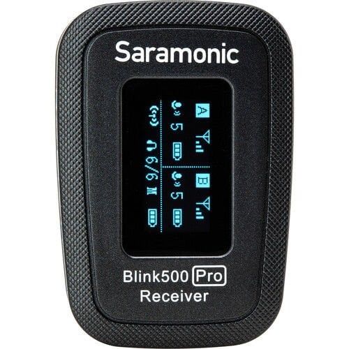 Saramonic Blink 500 Pro dijital kablosuz sisteminin bir parçası olan Blink 500 Pro RX çift kanallı, kamera montajlı alıcı, mevcut kurulumunuzu genişletmek, bozulan veya kaybolan bir alıcıyı değiştirmek veya elinizde yedek bir alıcı bulundurmak için ayrı bir bileşen olarak mevcuttur. Ünite, aynı anda iki Blink 500 Pro TX vericisinden (ayrı olarak mevcuttur) kablosuz ses alabilir ve 3,5 mm hat çıkışını bir kameraya, video kameraya, akıllı telefona veya tablete bağlamak için kablolar içerir.